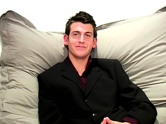 Sexy Brit Alex Z beats his big meat and cums after interview