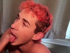 Straight amateur twink cums in gay mouth after blowjob