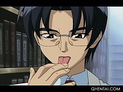 Brunette hentai teen blowing horny shaft gets cunt licked